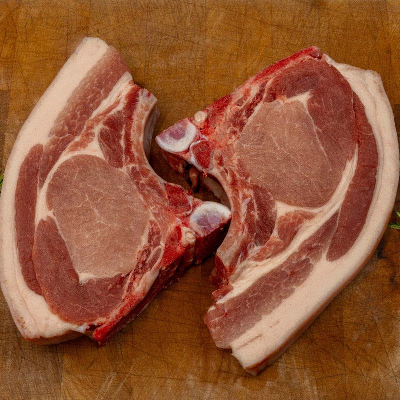 The classic pork chop, well marbled cut from the loin. This cut is best baked or pan fried, bone left in for added flavour plus the all important crackling willl be left on.